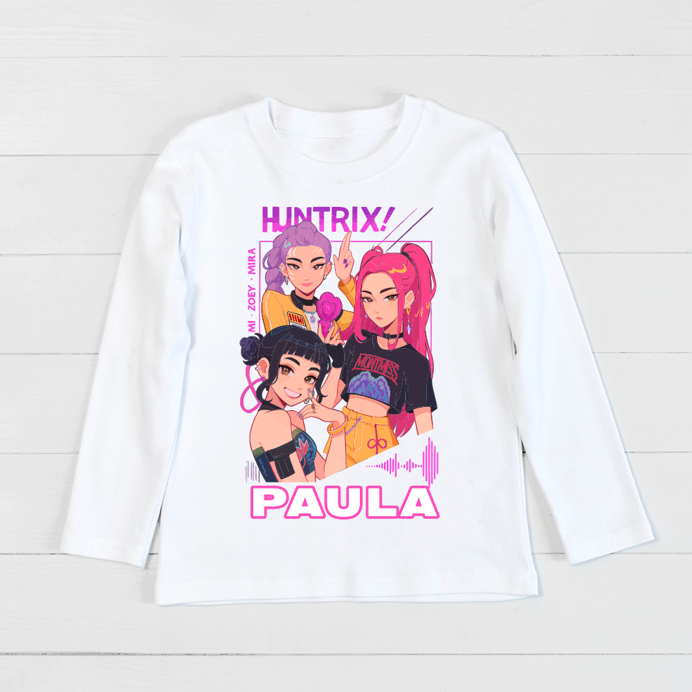 El diseño “Huntrix” es una explosión de color, actitud y rollazo K-Pop. Perfecta para niñas creativas, alegres y fans del estilo urbano animado.