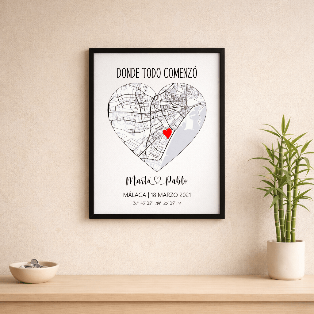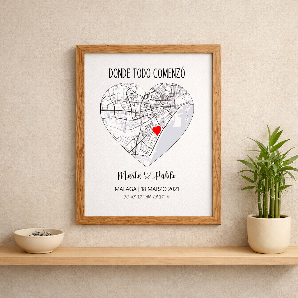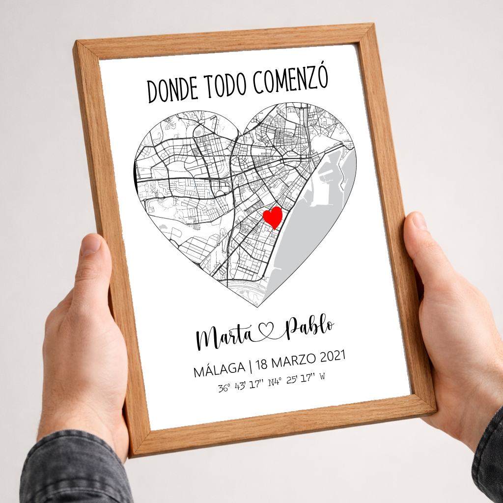 Si solo pones la ciudad, ubicaremos el corazón de forma artística dentro del mapa, manteniendo la estética y el equilibrio visual