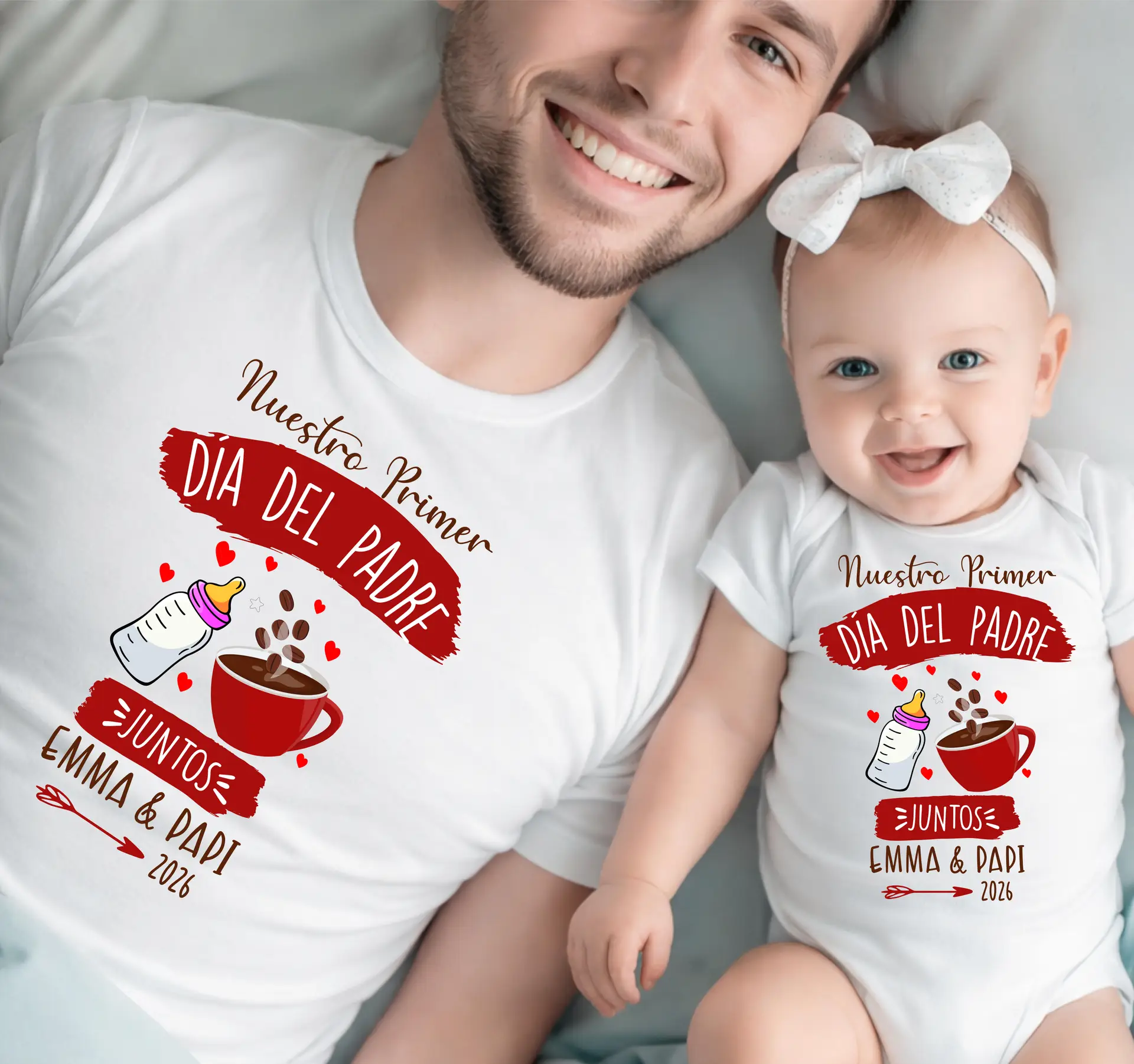 Incluye 1 camiseta para papá + 1 body/camiseta para bebé.