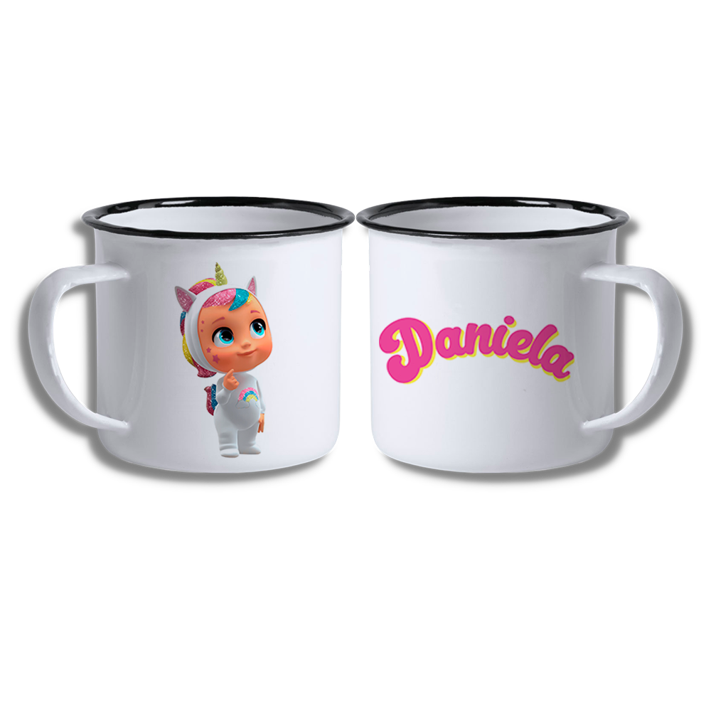 Taza metálica con el diseño de «Bebés llorones», puedes personalizarla poniendo el nombre. Gracias a su resistencia es perfecta para niños, podrá llevarla a todas partes!