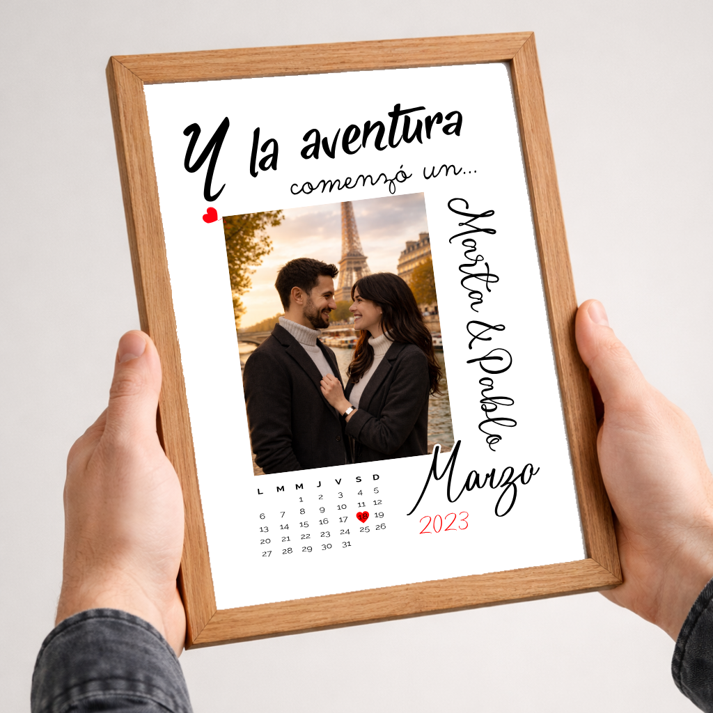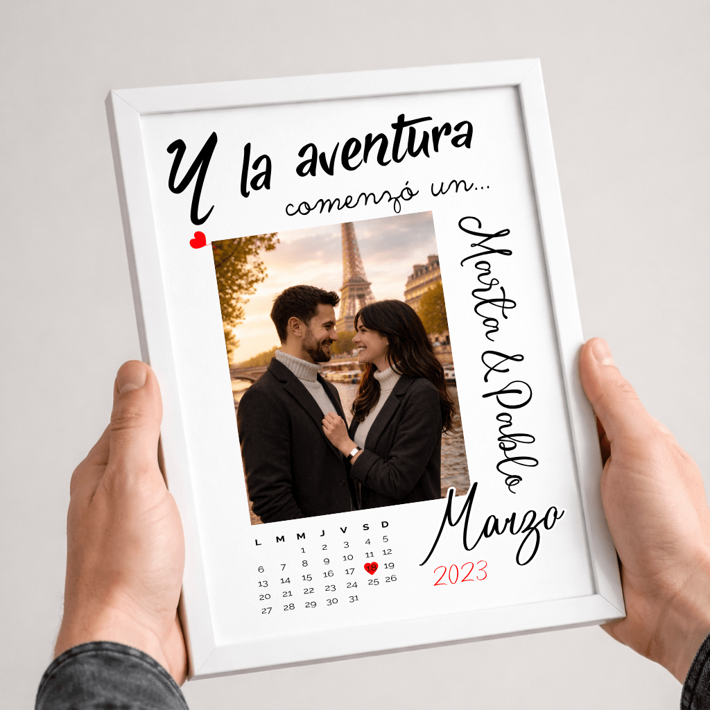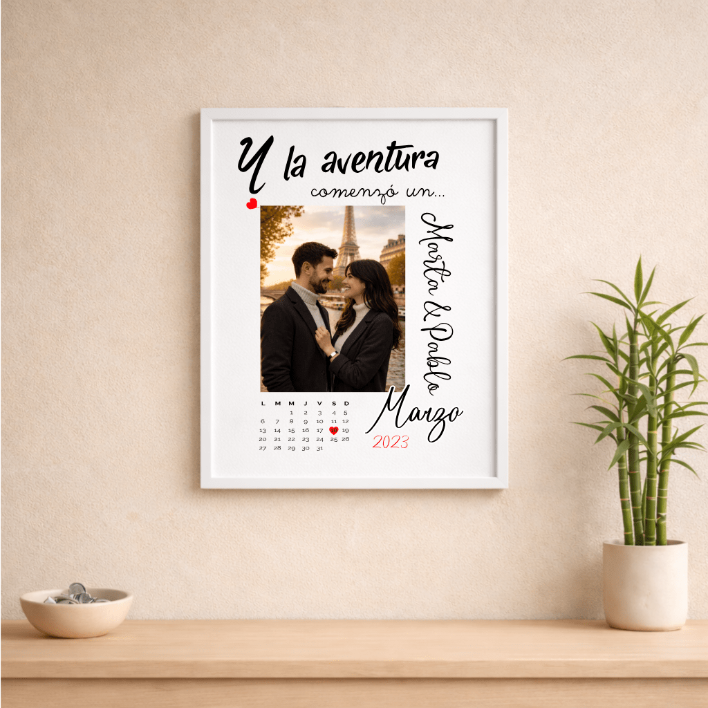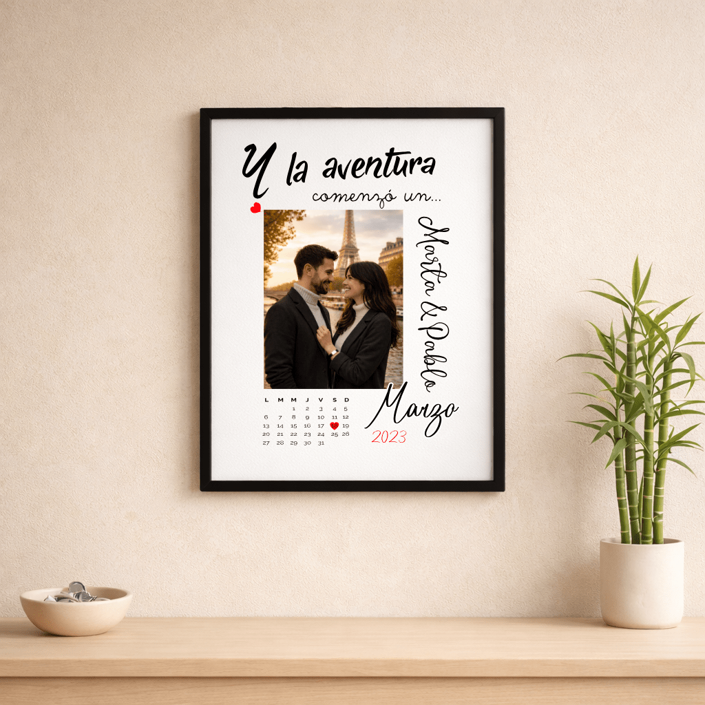Para guardar ese instante para siempre, nace esta lámina personalizada con vuestra fecha especial, vuestra foto favorita y el mes exacto donde empezó vuestra aventura. ❤️✨